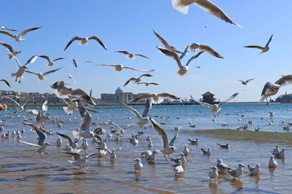 ▲ 【山海冬韵·鸥遇青岛】快来青岛和小可爱们“鸥”遇吧一起打卡青岛冬季限定浪漫一起期待万鸥齐飞的名场面与海鸥共舞,与美好相遇!投喂时间随时喂食有可能造成海鸥消化紊乱,所以推荐喂食海鸥的时间为上午9时至11时、下午2时至5时。文明投喂喂鸥时应以抛喂为主,要一粒一粒抛向空中,避免过多的饲料掉入水中,这些饲料如果不能及时被海鸥取食,大量在水中浸泡积累会对水质造成污染。