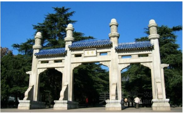 ▲ 中山陵景区以中山陵为核心,中山陵位于钟山中茅峰南麓,是伟大的民主革命先行者孙中山先生的陵墓。中山陵陵寝建筑中轴对称,从牌坊、墓道、陵门、碑亭到祭堂、墓室平距700米,高差70米,有392级石阶和平台10个,全部用白色花岗岩和钢筋水泥构筑,覆以蓝色玻璃瓦。被誉为“中国近代建筑史上第一陵”。中山陵景区总面积3.22平方千米,包括中山陵及其周边的音乐台、孝经鼎、仰止亭、流徽榭、行健亭、光化亭、孙中山纪念馆、紫金山探险公园等景区内其他相关景点构成