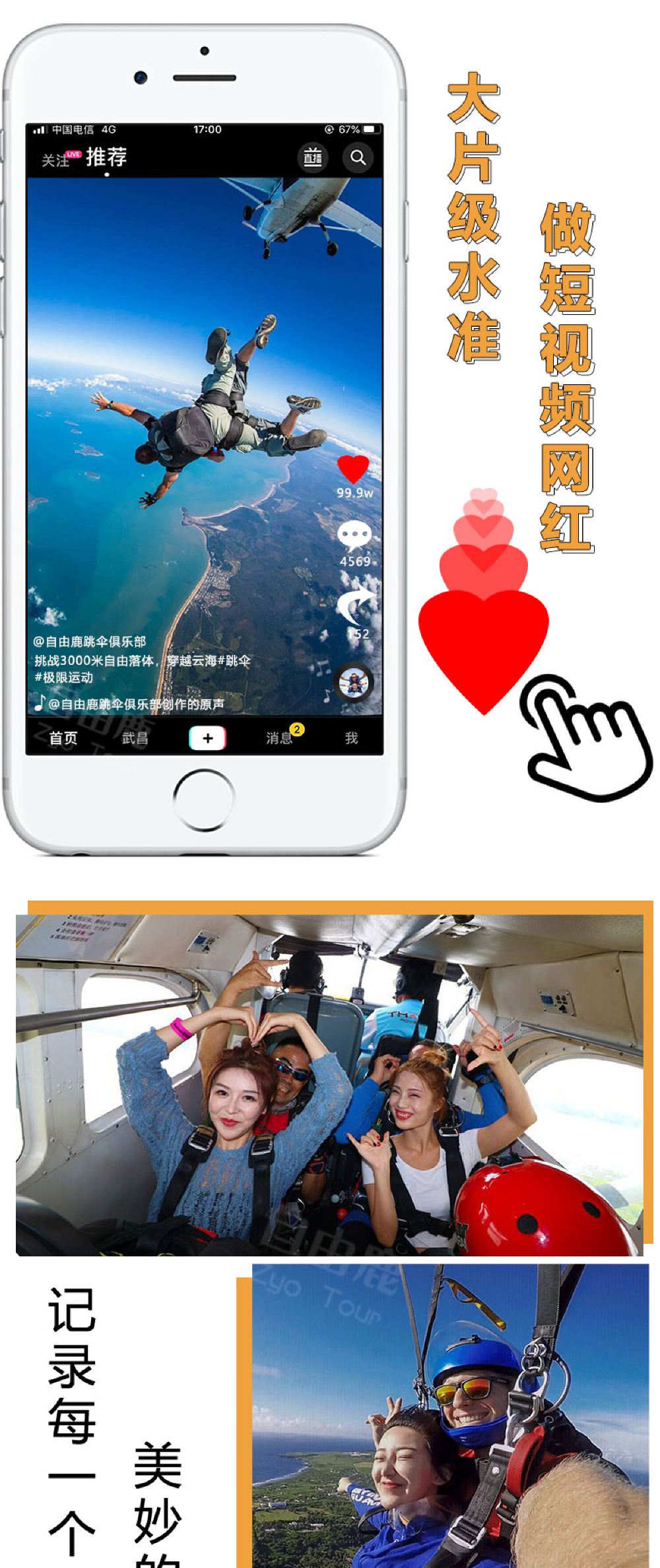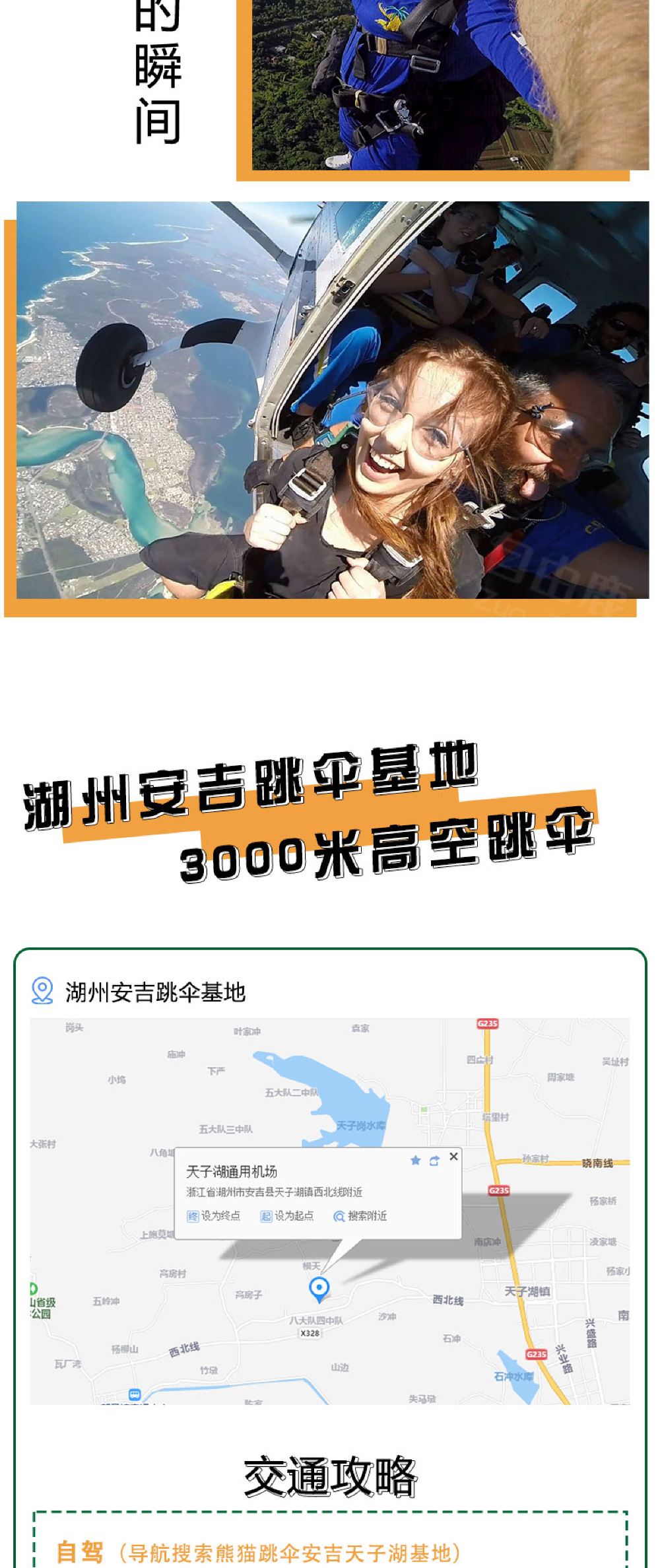 湖州安吉天子湖机场跳伞基地一日游【3300米高清摄像跟拍】【[刺激嗨玩]3000米跳伞高度+高清摄像跟拍】
