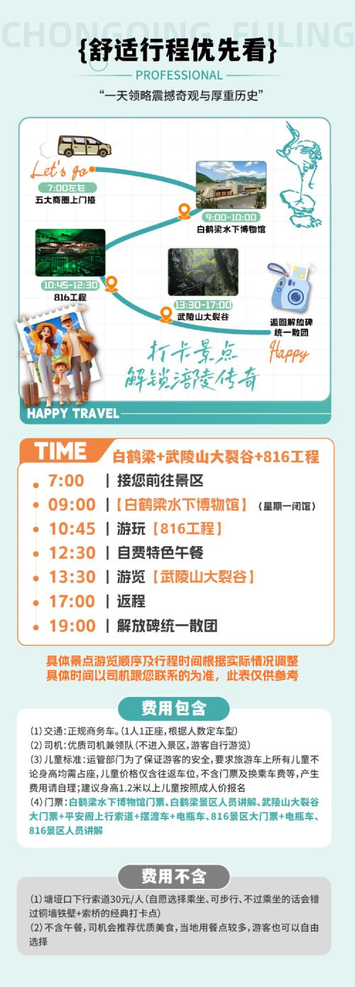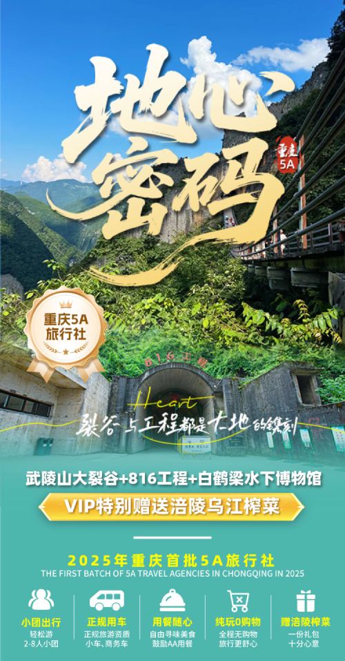 重庆武陵山大裂谷+816工程+白鹤梁一日游纯玩2-8人小团【2-8人小团,正规车辆,专业司兼导,让您出行更舒心】