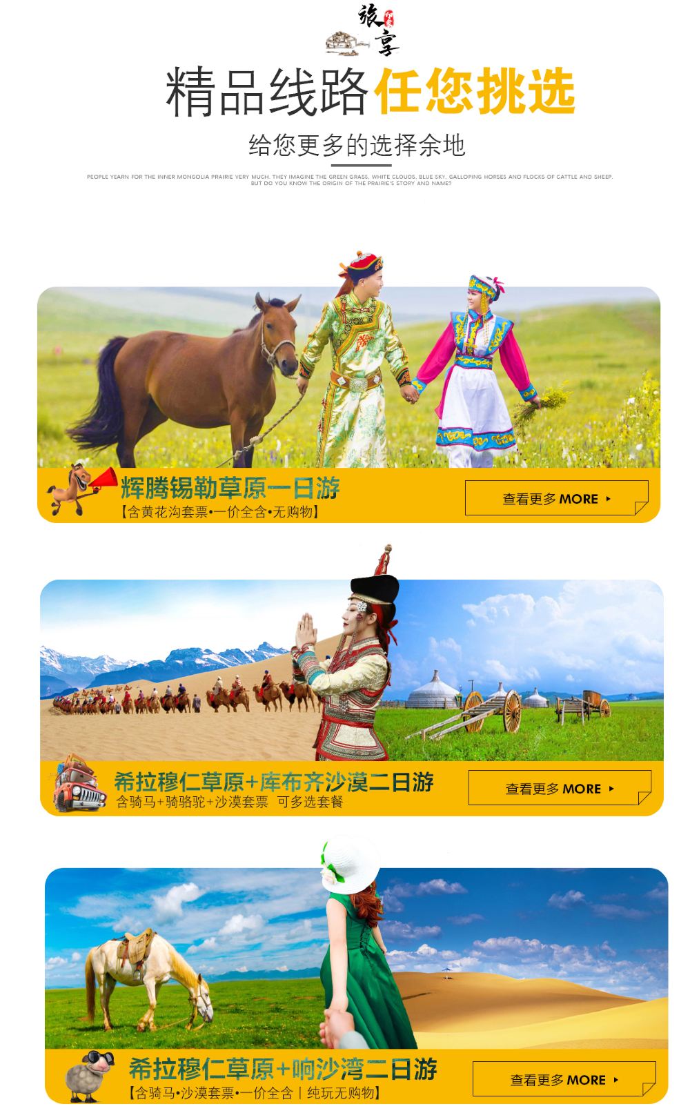 呼和浩特+响沙湾一日游【含往返索道丨单岛套票丨纯玩无购物】【[出游保证]:真正的纯玩无购物,不进任何景区内的购物店,让您游玩时间更充裕。】