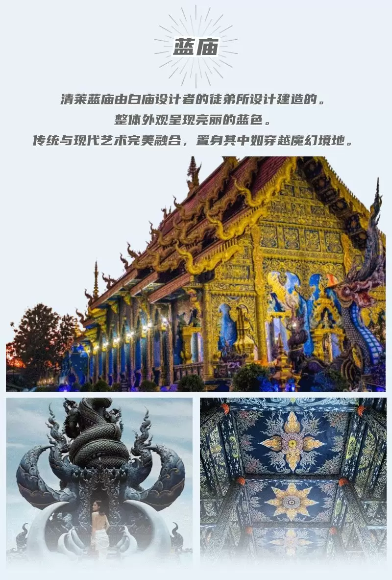 清迈黑庙+蓝庙+长颈族村+金三角+清莱温泉+白庙一日游【9-12人VIP精品小团|中英文导游|泰服+自助餐】