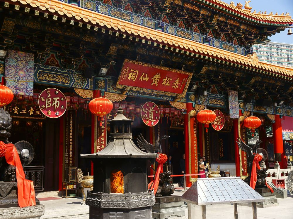 ▲ 黄大仙祠是香港著名的庙宇之一 ,崇奉道、佛、儒三教 ,其“五形”建筑布局别具特色 ,常年吸引无数善信到来膜拜求签 ,香火鼎盛。