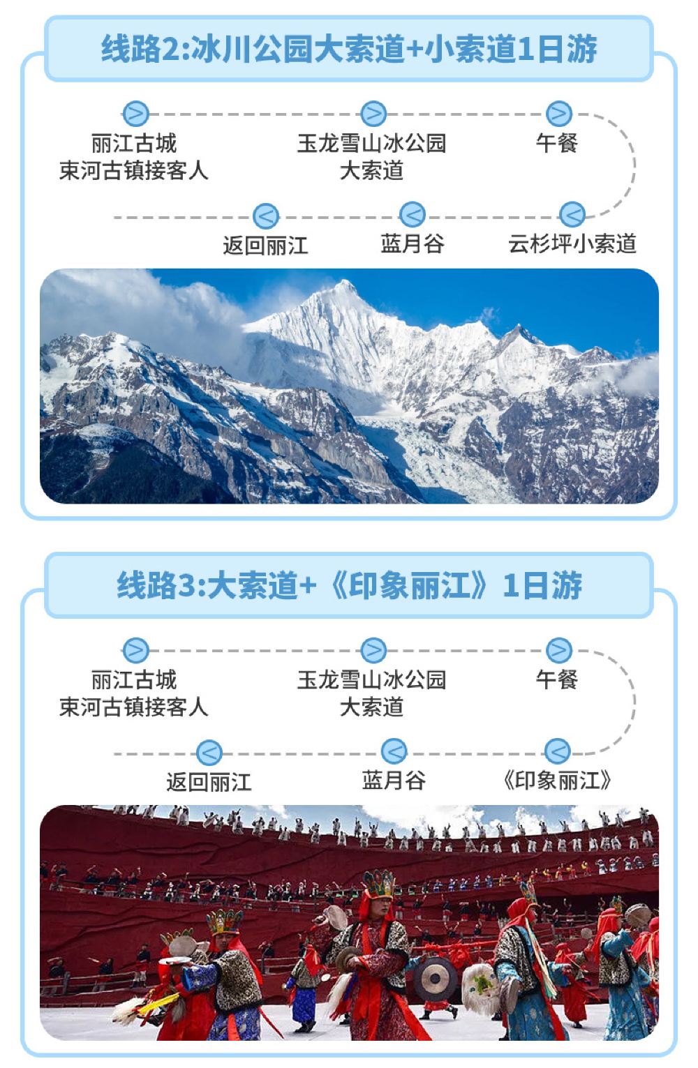 丽江玉龙雪山大索道+蓝月谷一日游6-8人小团赠送三宝【[安心出行]抢票套餐。需要客人配合抢票,介意慎拍】