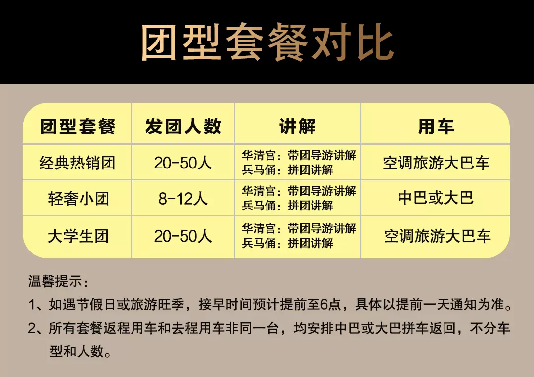 以上均按成人购买,产生优惠均由导游在出行当日现场退费,如兵马俑免票退费 70元 如华清宫免票退费 40元,如兵马俑半票退费 35元 如华清宫半票退费 20元