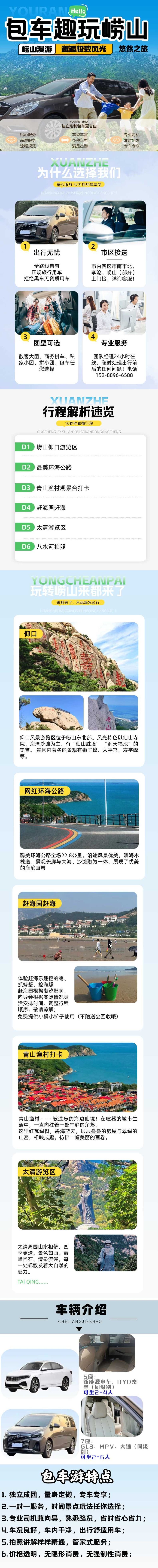 用车人数:6-8人以内选择支付1份9座车即可,包车时常:用车时间为早8晚5点用车,由于旅游旺季会有堵车情况,给大家延长到18点结束,不超过18点就不会有加时费哦!