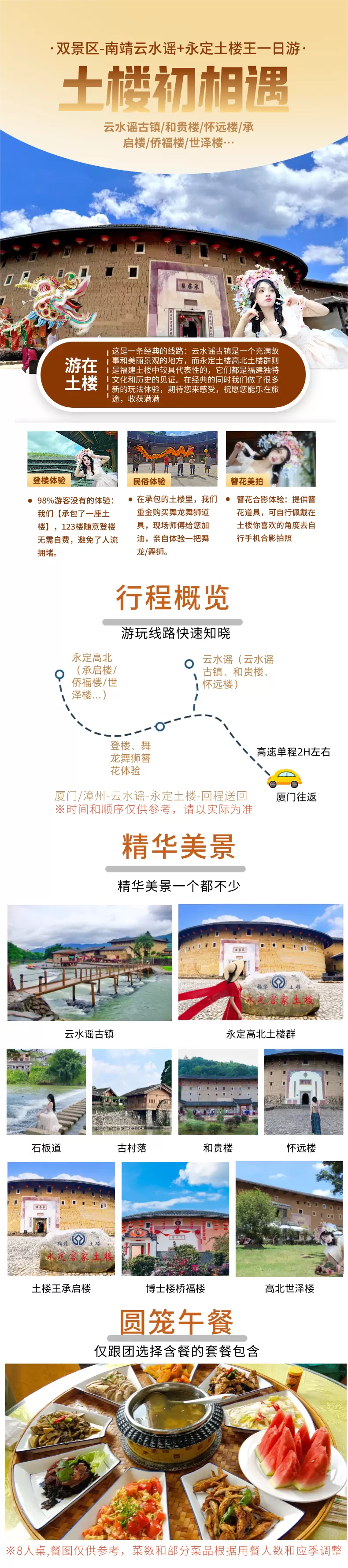 厦门福建土楼(南靖)景区+云水谣古镇+福建土楼王景区一日游【田螺坑、云水谣、永定土楼、初溪、套餐可选】