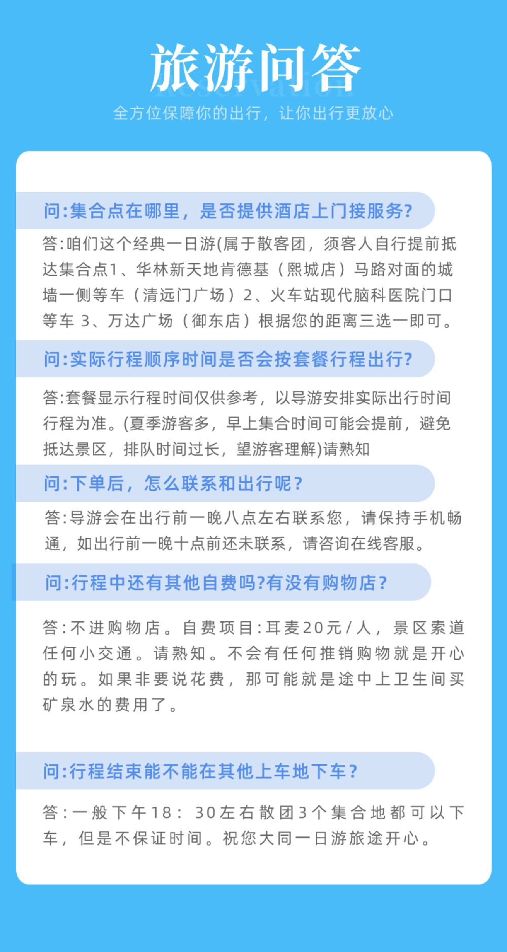 所有含门票套餐,网上无法预约门票的,导游去了景区现场买票,如遇景区现场临时停票的情况,无法入园,含门票退门票费用,买卖双方无责,下单默认同意本款,介意慎拍