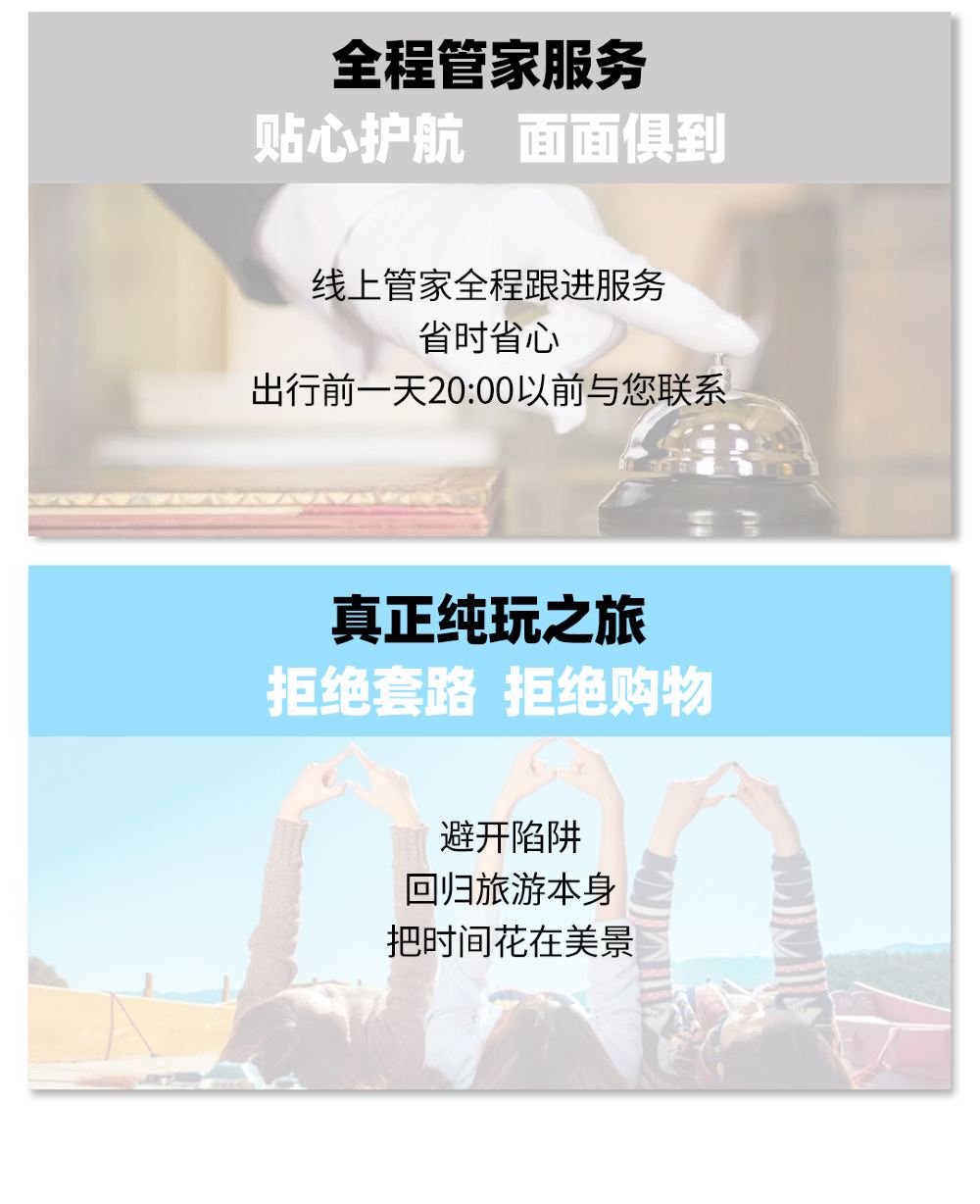 温馨提示:此行程售价为旅行社打包优惠价格,故优惠人群退费按照旅行社优惠价格退费,1、学生(18岁以上须提供学生证件),60-69周岁老人等半票人群,当天师傅退费50元。2、现役军人,退役军人,残疾人士,70周岁以上(提供证件)等免票人员,当天师傅退100元