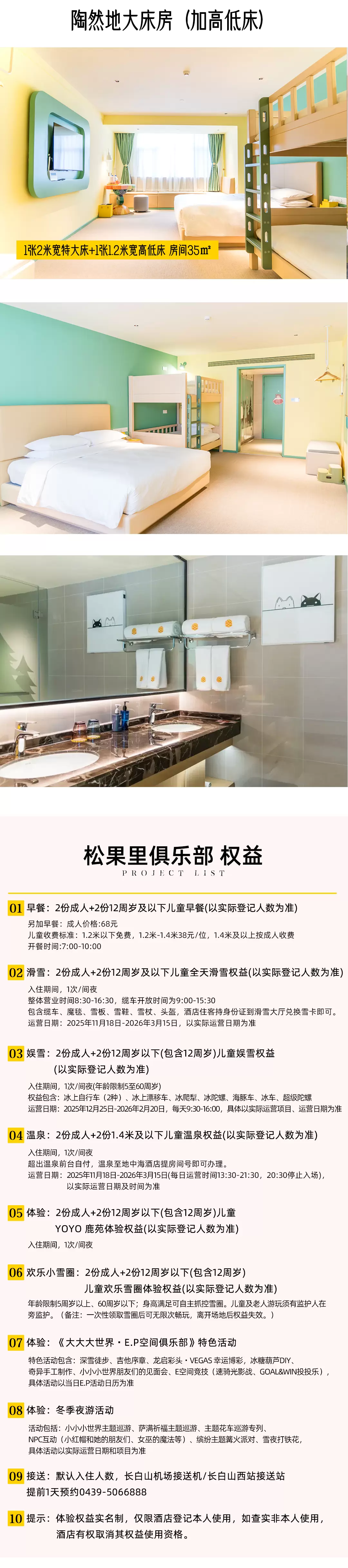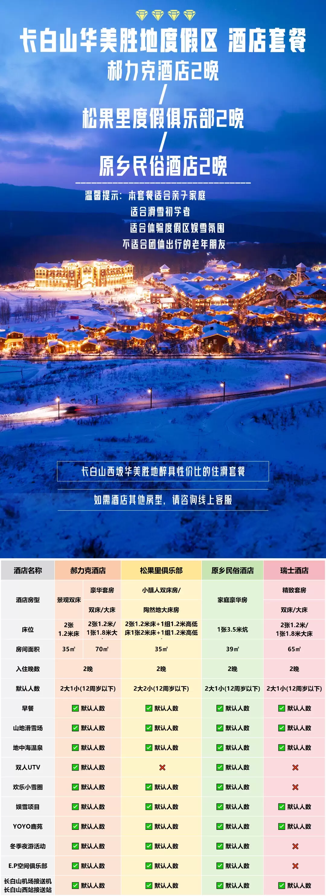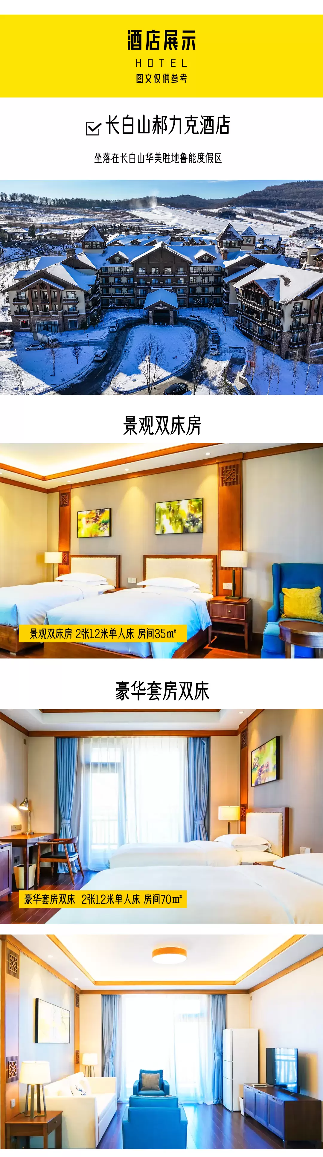 【酒店套餐】长白山华美胜地度假区3天2晚滑雪套餐可选郝力克/松果里俱乐部瑞士酒店-滑雪+温泉+特色体验+早餐