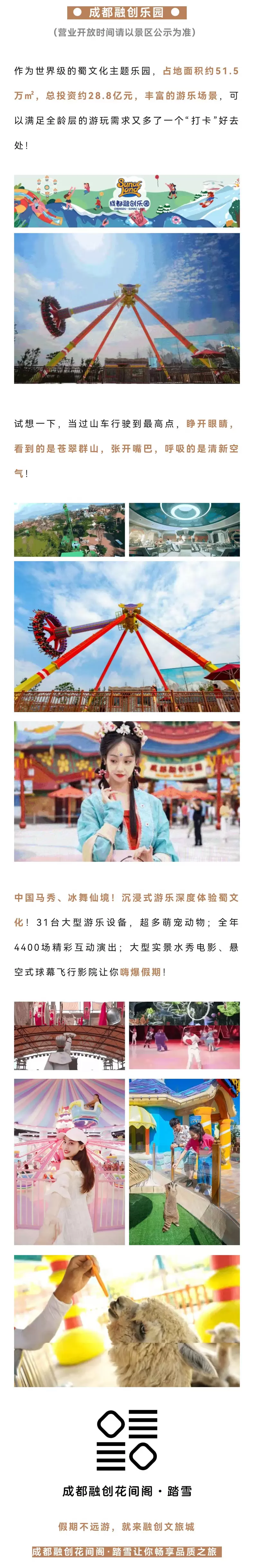 【官方热卖推荐】可选成都热雪奇迹/成都融创乐园+成都融创文旅城内花间阁·踏雪酒店2天1晚+双人自助早餐