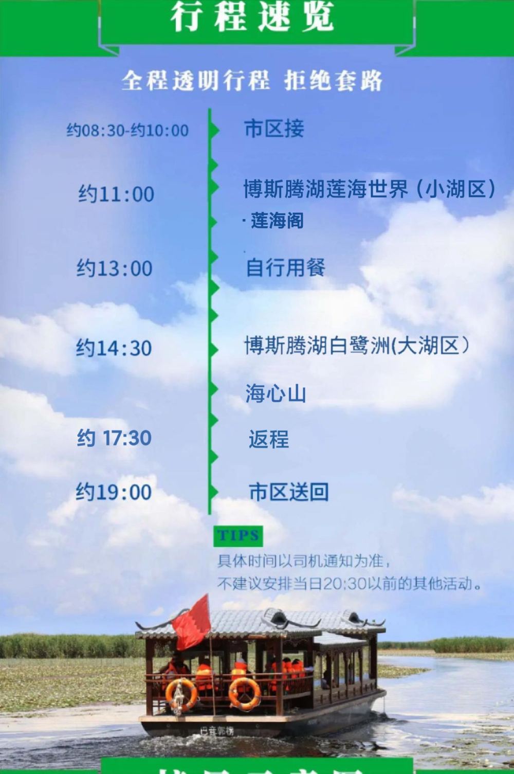 新疆博斯腾湖莲海世界+白鹭洲+海心山一日游(6人小团)【[服务升级]纯玩无购物,本社独立发车;市区,火车站。上门接送;】