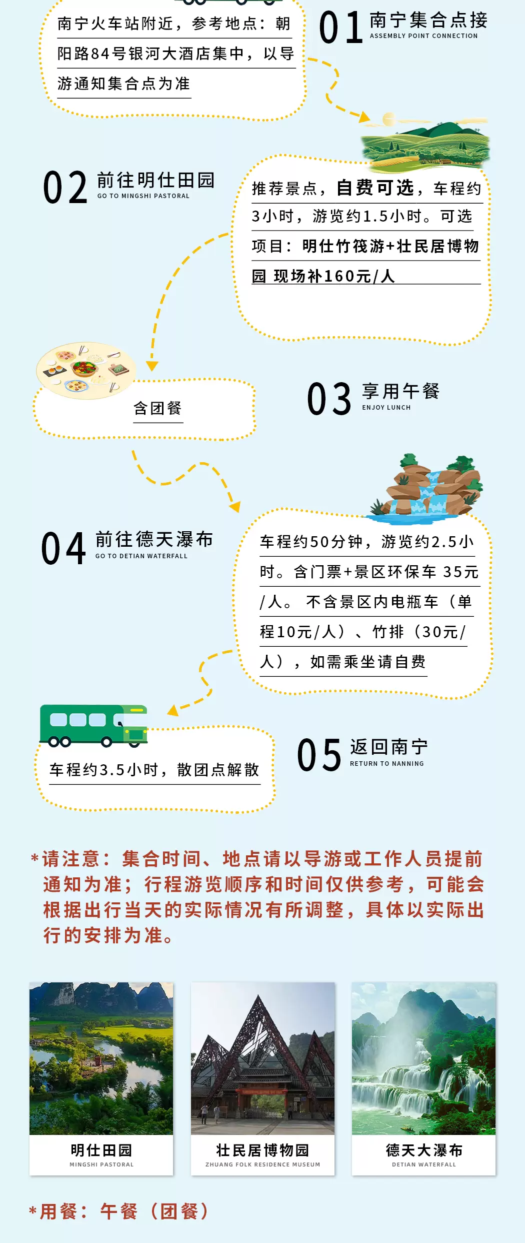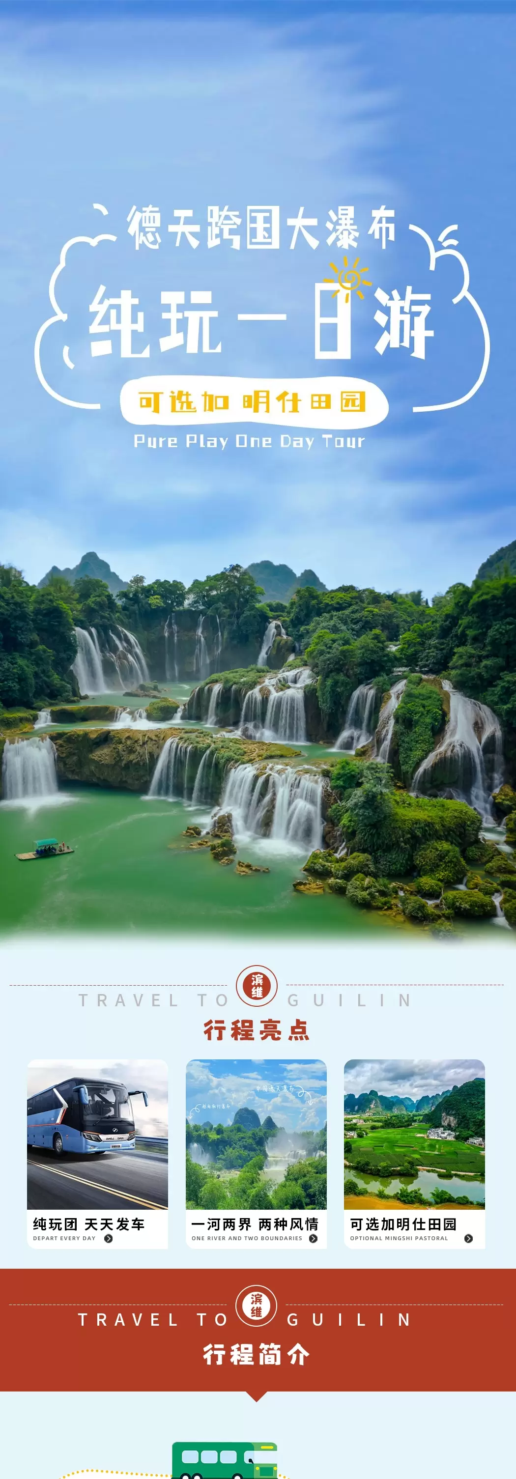 南宁德天跨国瀑布+崇左明仕田园风景区一日游【可选直达德天团、2-8人小团 天天发团】