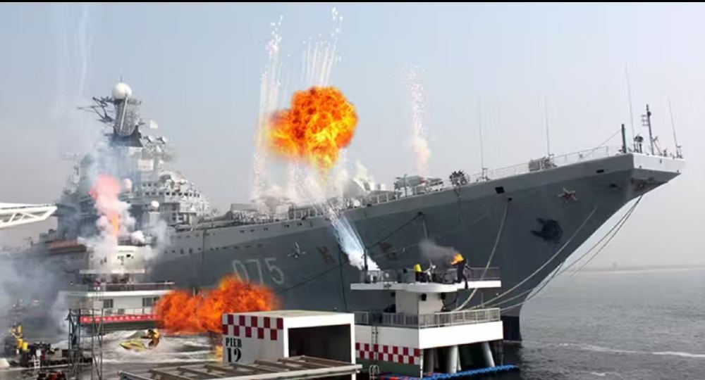 “基辅”号航母是前苏联“基辅”级航母的首制舰,建造于1970年,1975年建成服役,1994年退役,曾经是令世界瞩目的海上“巨无霸”,让西方世界畏惧的“海上杀手”,服役间曾出访印度、朝鲜和阿尔及利亚等国,被喻为“水晶理想”、“国家名片”,前苏联北方舰队的旗舰,一度是前苏联海军的象征。“基辅”号航母全长273.1米,宽52.8米,全高61米,标准排水量32000吨。满载排水量40500吨。续航力13000海里,航速32节,舰载官兵1400名,舰载飞机33架,其中Ka-27/Ka-25反潜直升机19架,Yak-38短距离垂直起降战斗机12架,另有一架教练机和预警机。船体以甲板为界,舰岛上8层、甲板以下9层,全舰共17层,舰载官兵1400人,基辅号航母舷号为075。