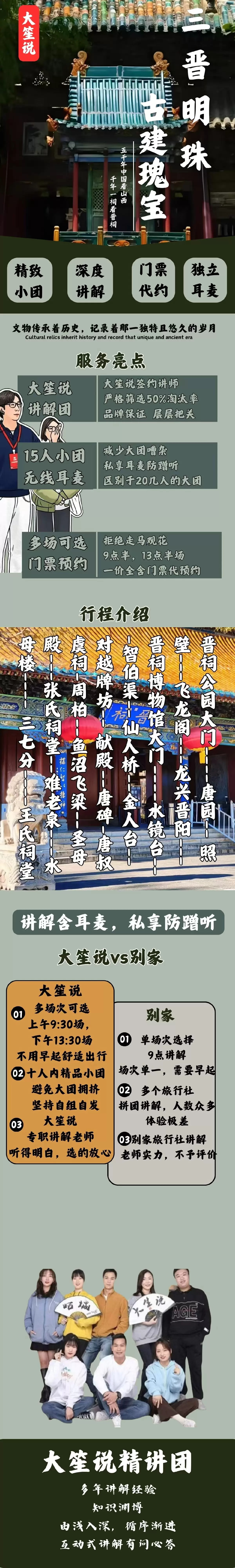 【8年老店·大笙说】山西晋祠博物馆门票+2H深度讲解半日游【多场次可选/无线耳麦/深度讲解】