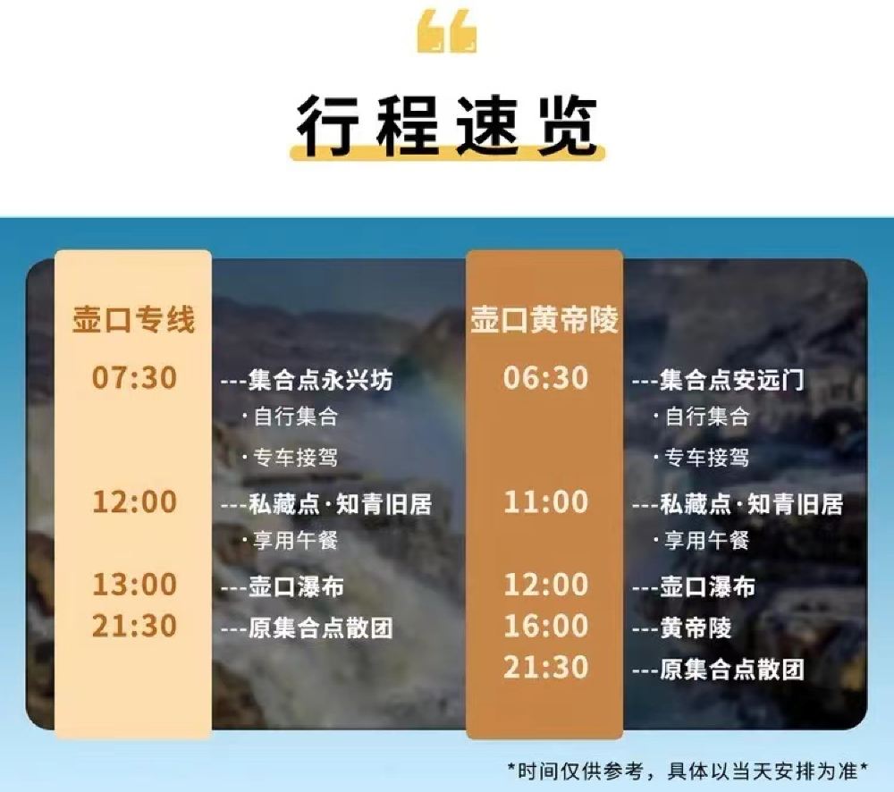 陕西黄河壶口瀑布+知青旧居一日游【专车接早+可选头等舱】【[专车接早]:三环内专车接早】