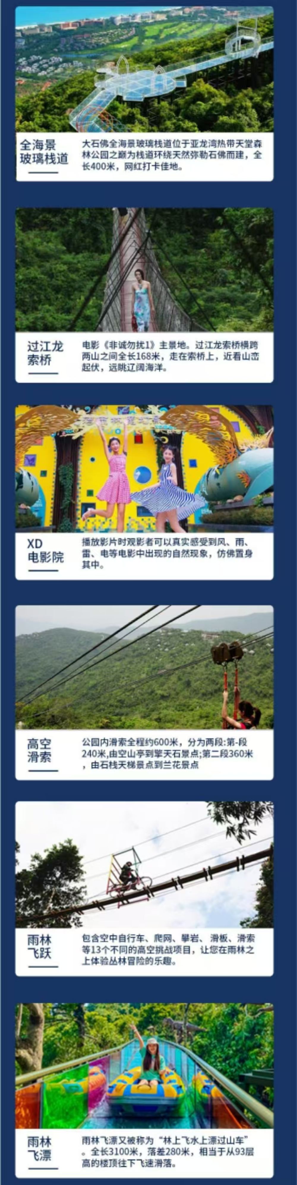 ▲ 亚龙湾热带天堂森林公园景区位于亚龙湾国家旅游度假区内,电影《非诚勿扰2》、电视剧《亲爱的、热爱的》在海南三亚的主要取景地,游客来三亚的旅游圣地地之一,园区定位于滨海生态观光兼生态度假型森林公园,为第三代森林旅游产品的典范之作,园区内树木葱茏,能看那藤萝密布、溪水潺潺,可遇到那百年古藤,参天巨榕,能听闻虫唱鸟鸣,极尽野趣。景区内随处都可见《非诚勿扰2》、《亲爱的、热爱的》中的场景,舒淇、葛优、杨紫、李现走过的素有情人桥之称的“过江龙索桥”悬崖边的“峭壁天池”、见证浪漫爱情的《非诚勿扰2》里的试婚房