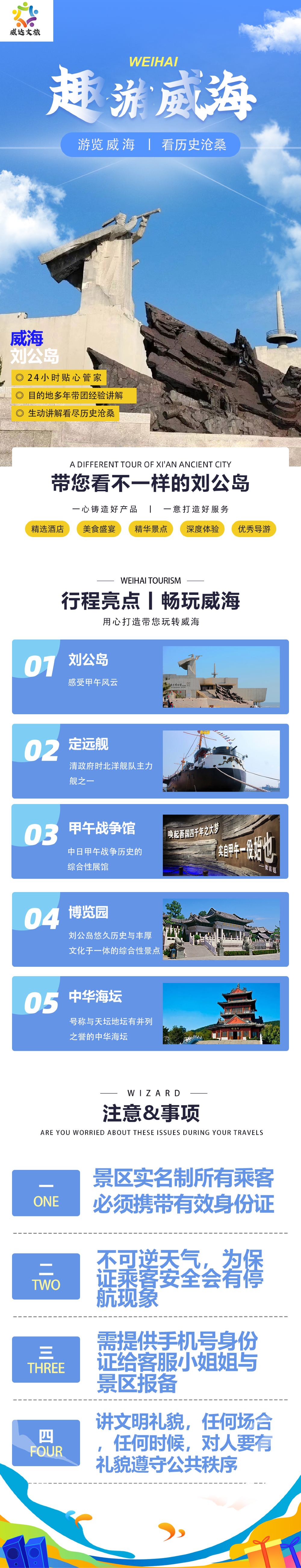 威海刘公岛景区+定远舰一日游【往返船票+景点门票+定远舰】【需带身份证才能入内】
