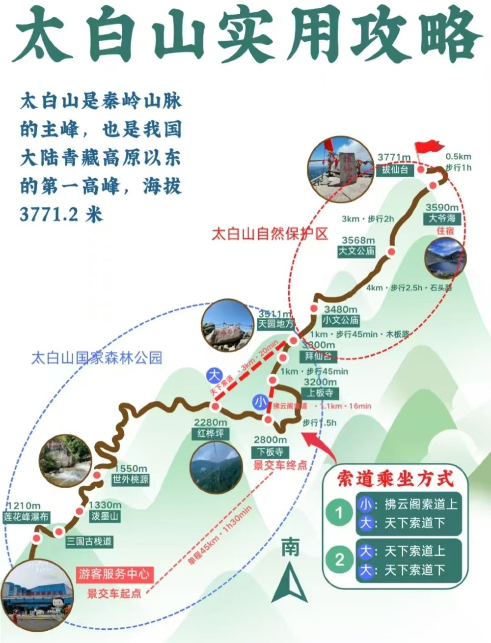①门票:含太白山景区首道大门票+景区内往返交通车。