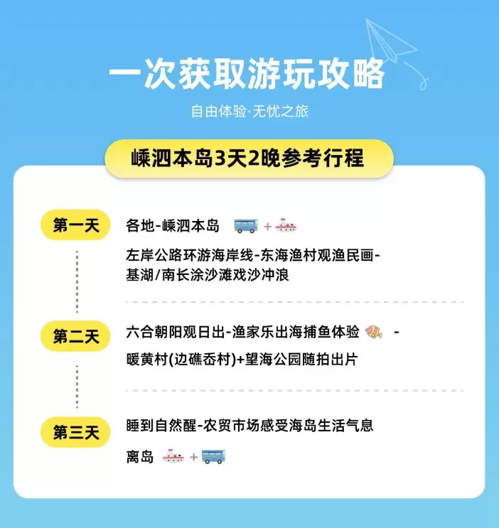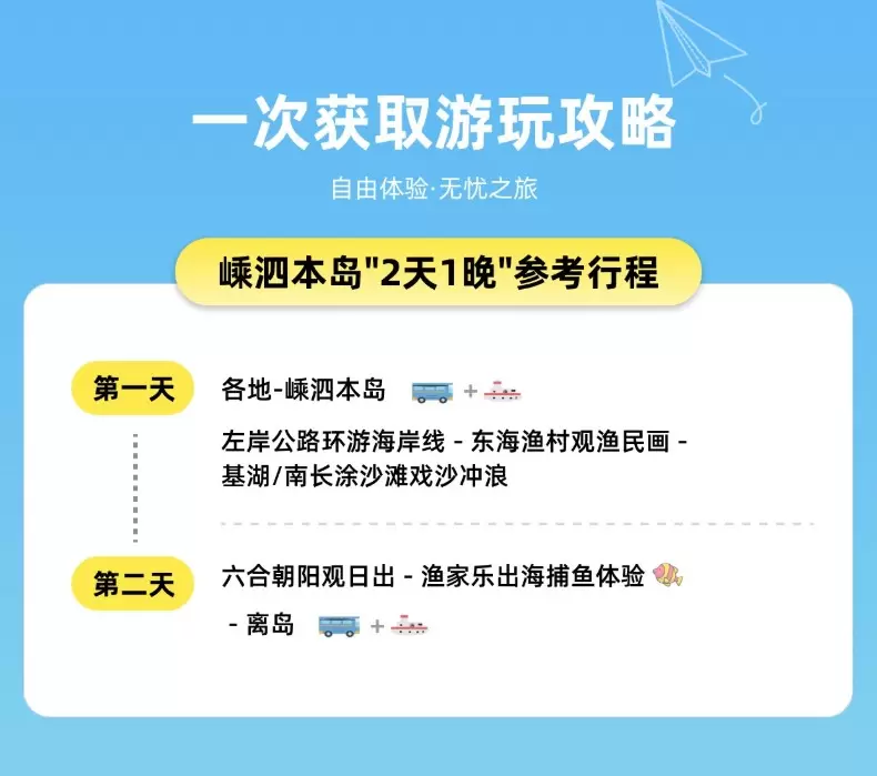 【嵊泗车船联票+住宿】杭州出发,1晚/2晚可选