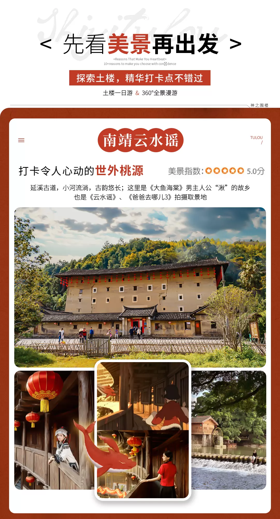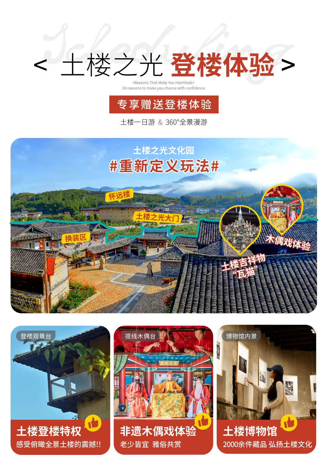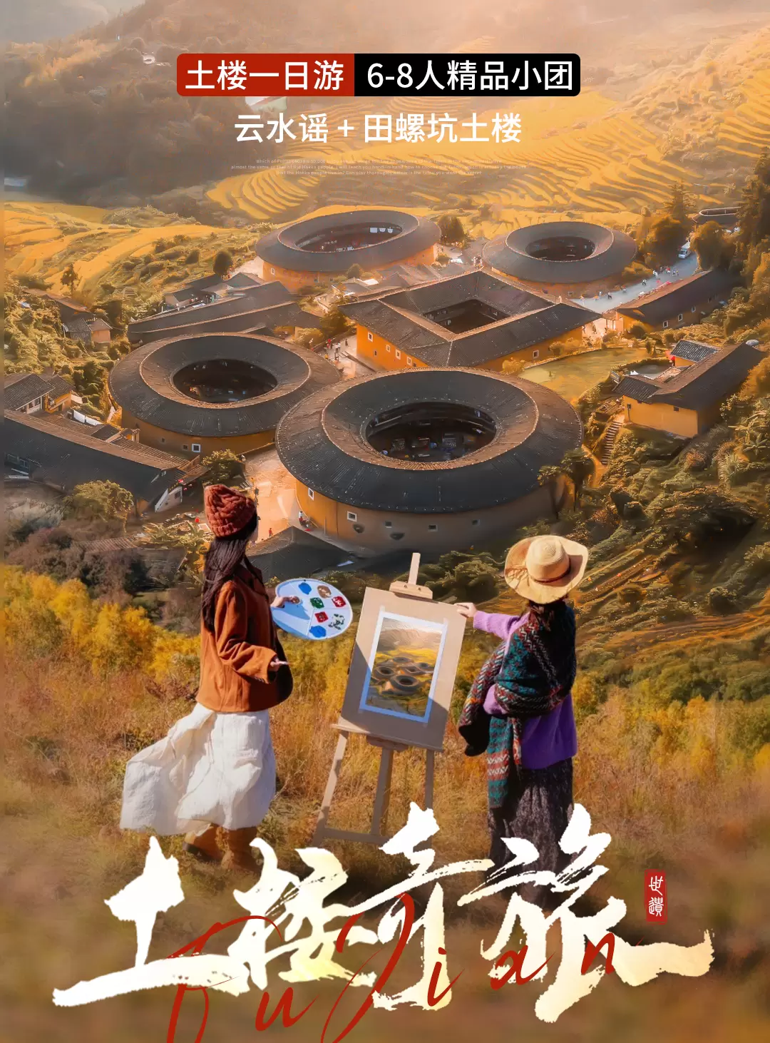 福建土楼(南靖)景区+云水谣景区+田螺坑土楼群一日游【人气游特惠6-8人团+上门接送|可选含餐|赠博物馆登楼】