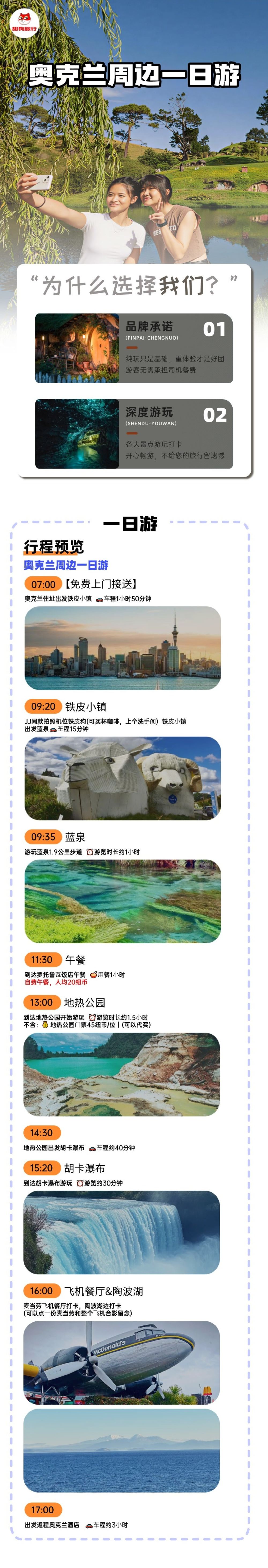 新西兰奥克兰往返一日游【含胡卡瀑布、地热公园、陶波湖含门票】【市区酒店接送,精致小团,含中文司导】