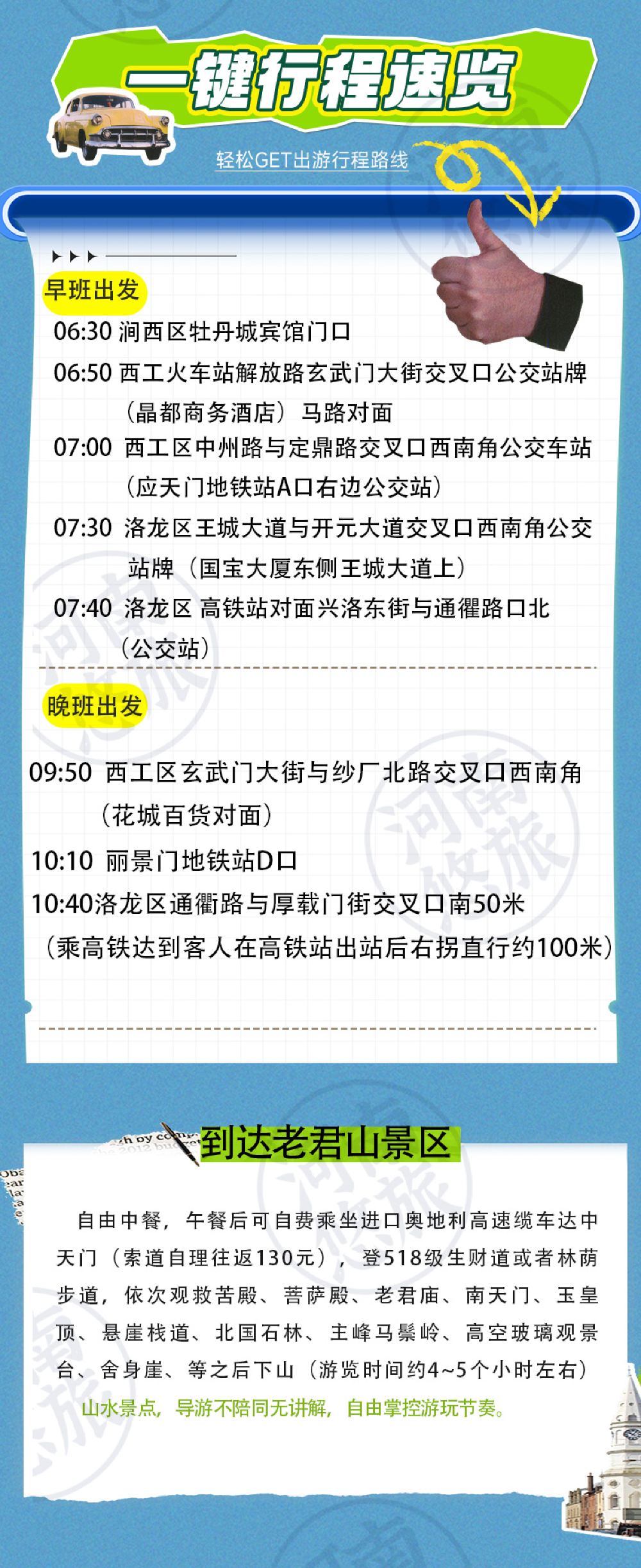 【直达景区索道口附近+多班可选】老君山一日游【[多种选择]可选早出发常规团,晚出发懒人团,下单后可备注出游时间或联系客服即可】