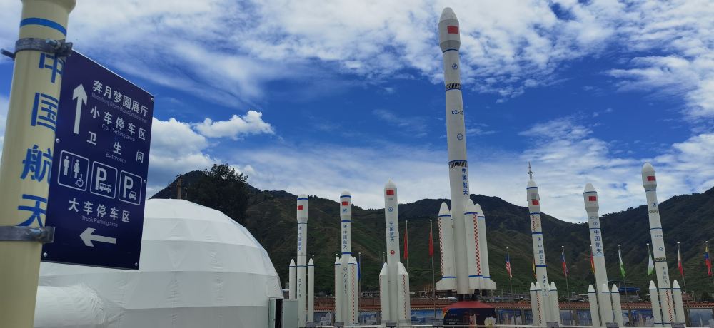 ▲ 展厅外还竖立着一枚1:2.8比例的“长征三号乙”火箭模型,该型号是西昌卫星发射基地常用的火箭型号。另外还陈列有各类航天重器完成使命后回收的文物,包括火箭箭体,火箭发动机等。展厅内摆放着各类长征系列运载火箭模型等。 此外,作为“奔月楼”,里面自然少不了嫦娥一号卫星、嫦娥三号玉兔月球车、嫦娥四号“鹊桥”中继星、神舟六号返回舱等模型