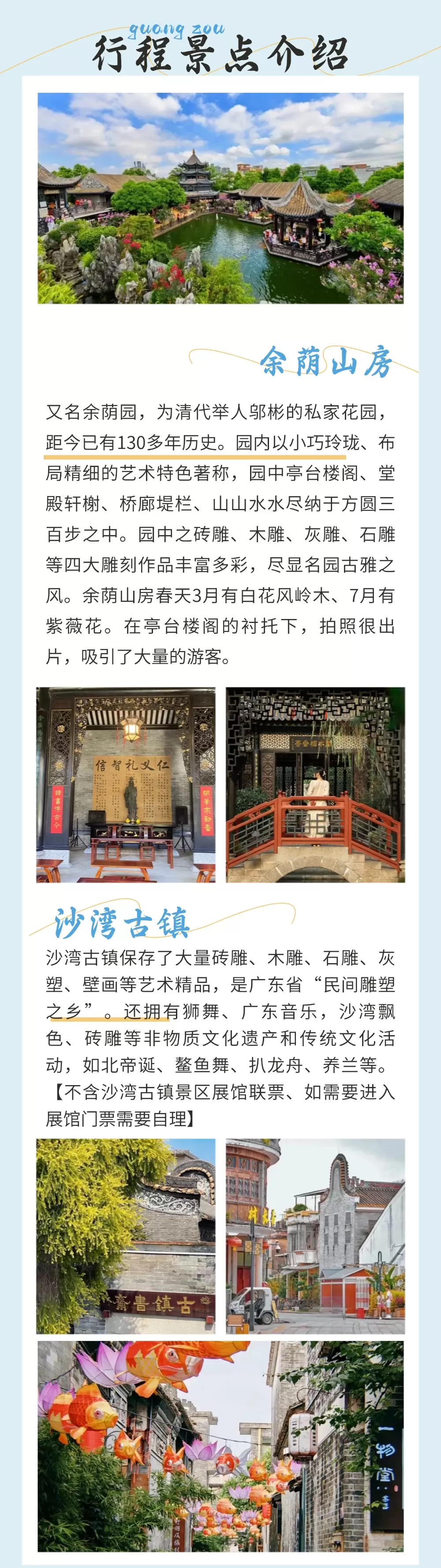 广州余荫山房+沙湾古镇+岭南印象园一日游【包车私家团接送+砖雕等非物质文化遗产+岭南文化+中山出发+番禺2线】