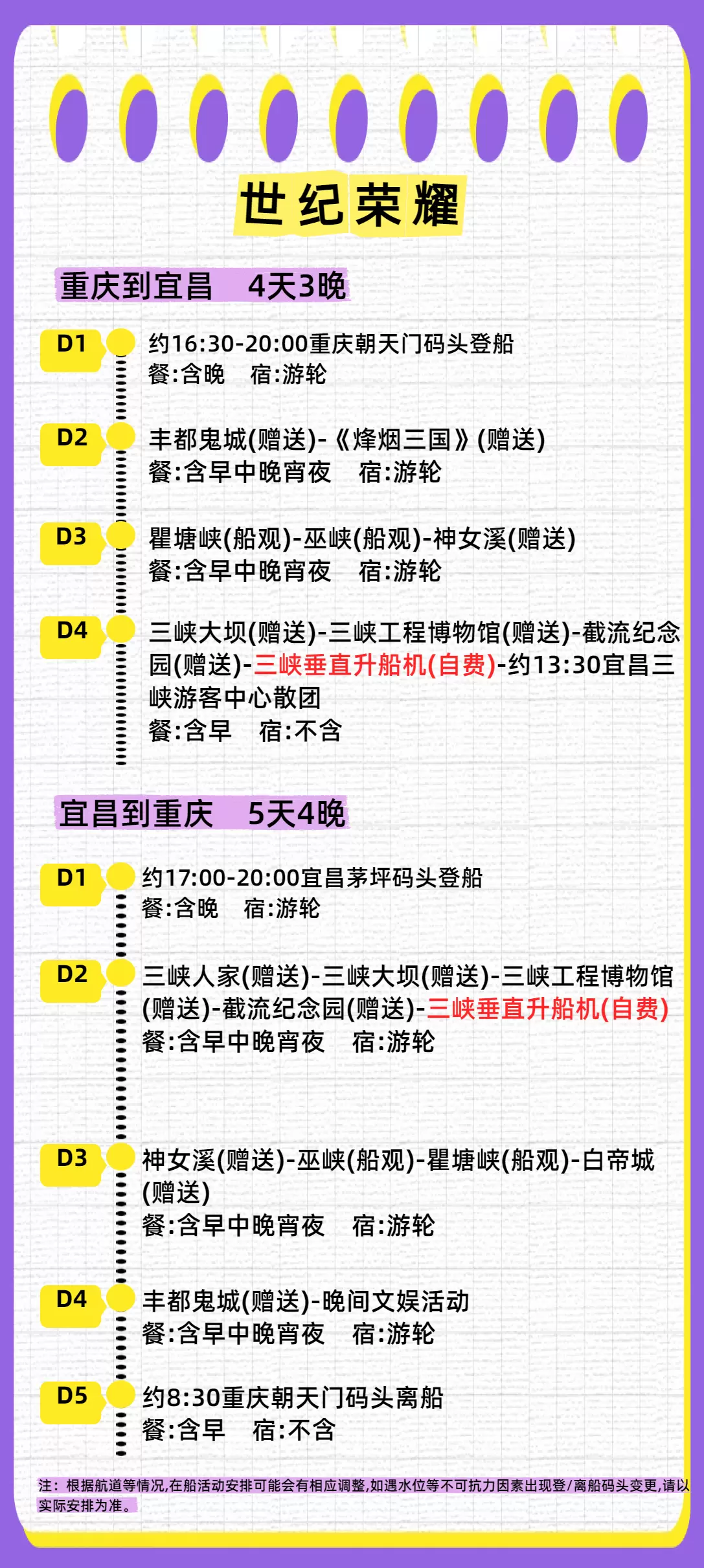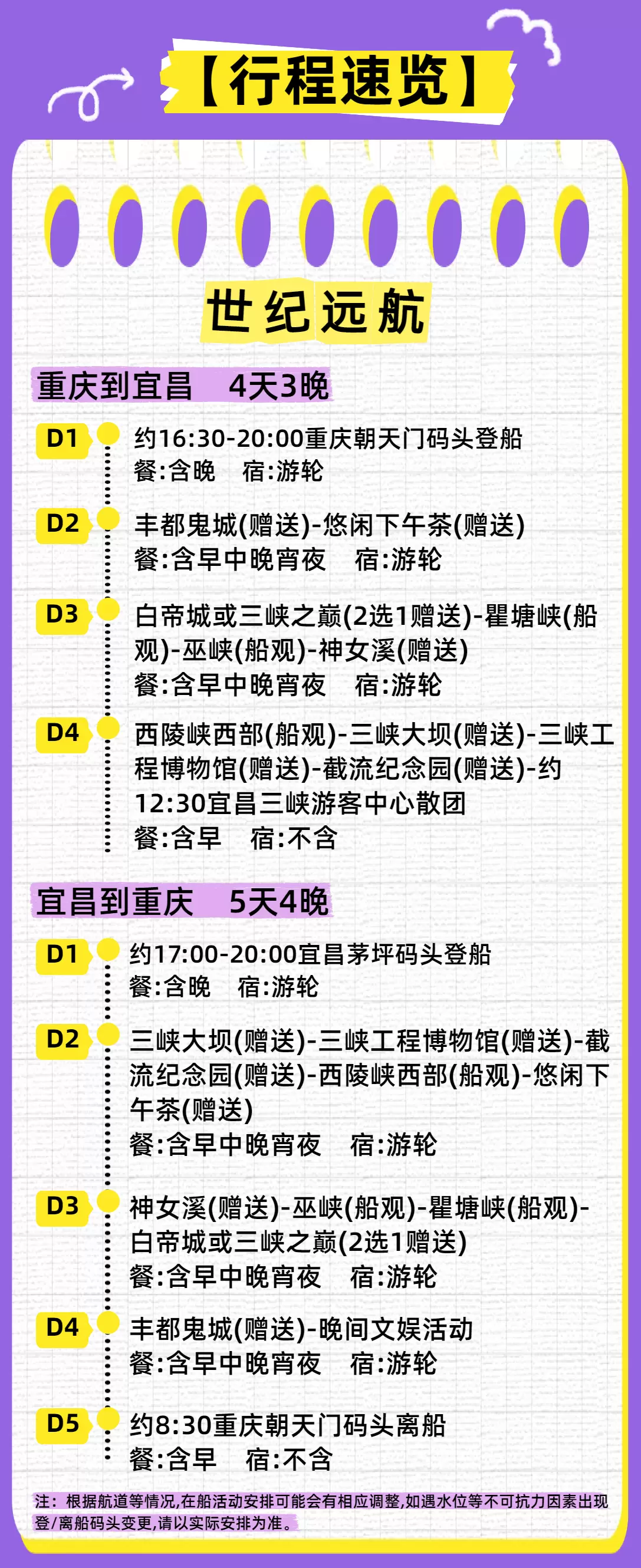 长江游轮+长江三峡+重庆三峡游船四日游【豪华游轮|世纪远航/荣耀/绿洲/凯歌/神话/传奇|重庆出发4天3晚】