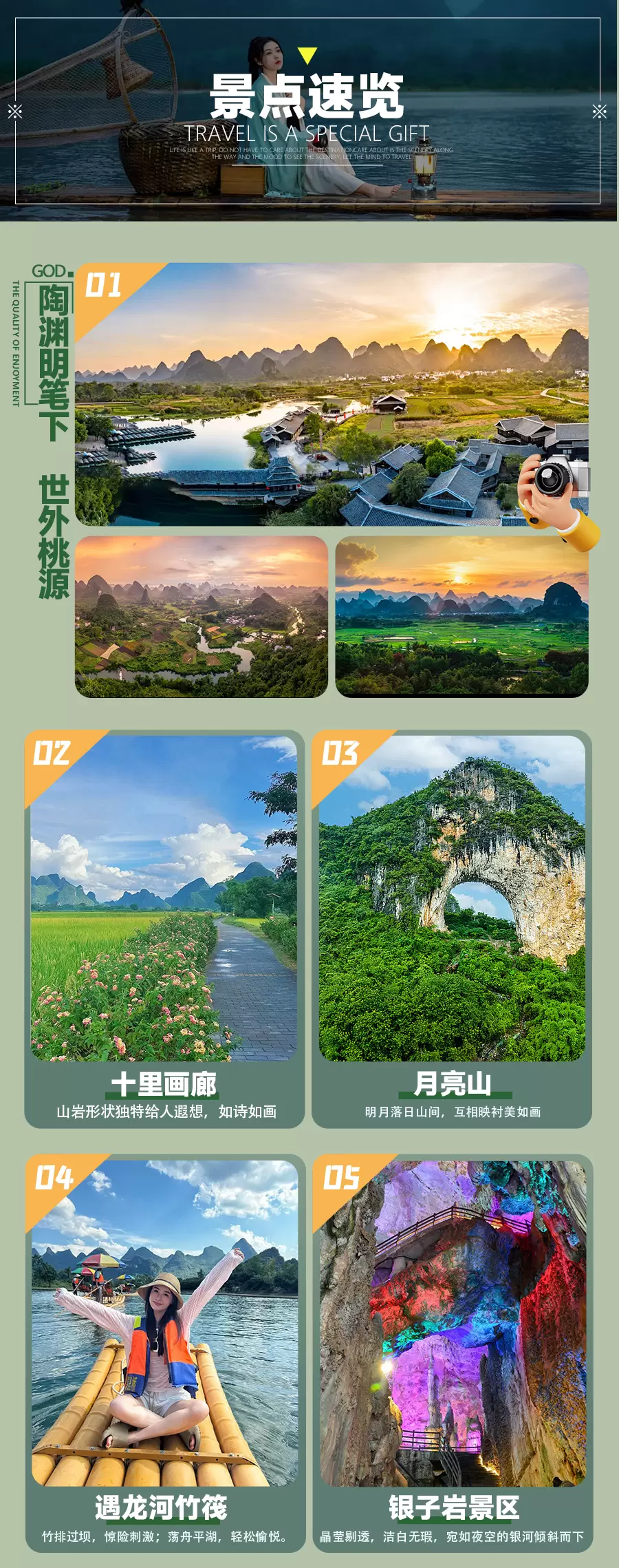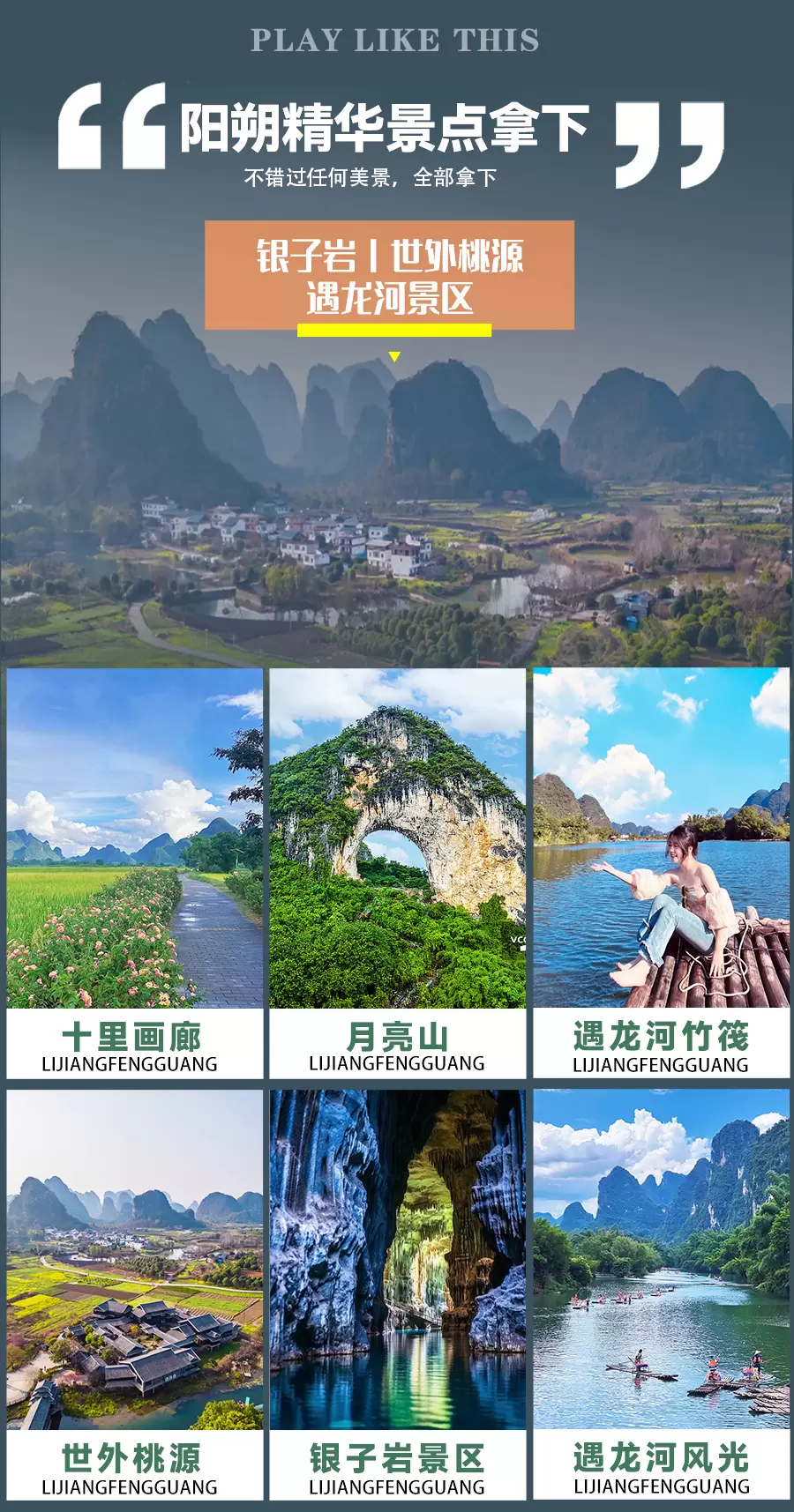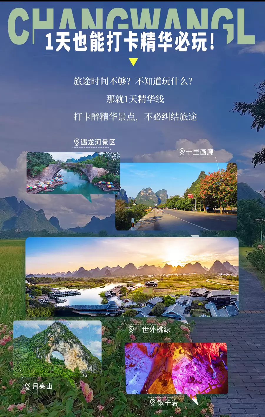 桂林+遇龙河竹筏+银子岩+世外桃源+阳朔十里画廊一日游
