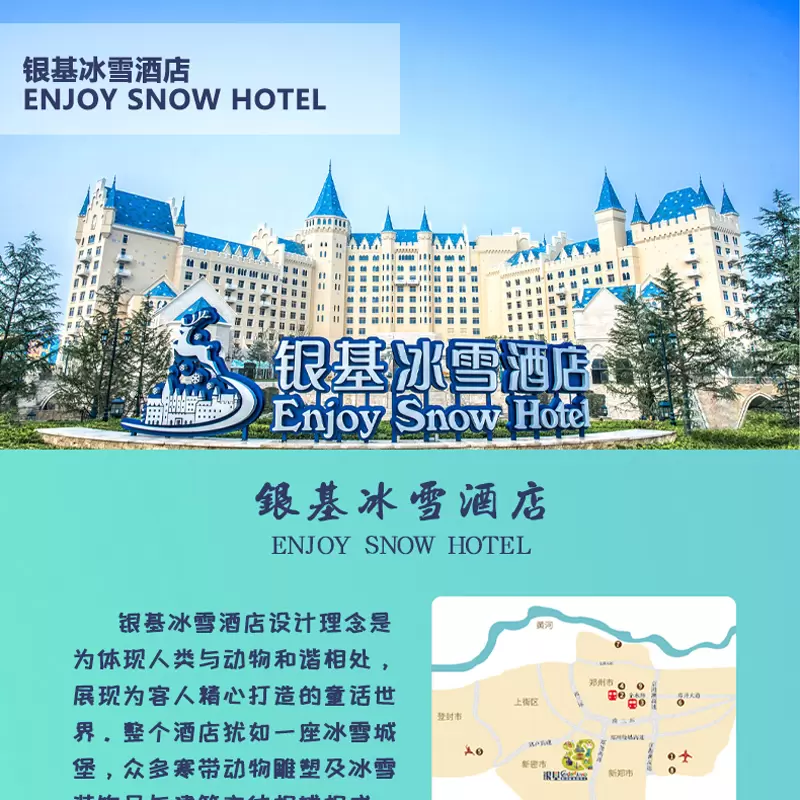 郑州银基冰雪酒店2天1晚动物王国冰雪世界自助早餐套票