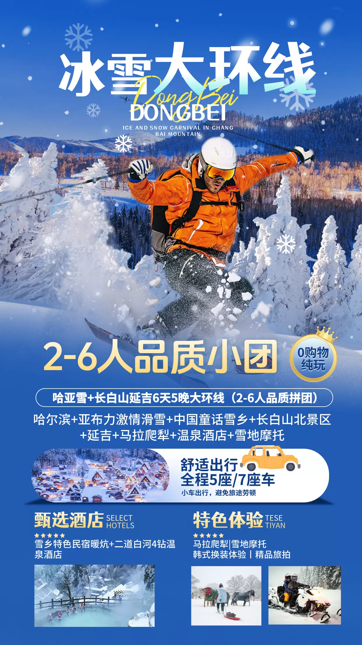 2-6人拼小团丨哈亚雪+长白山+延吉6天5晚大环线【真纯玩0购物丨马拉爬犁+雪地摩托+旅拍+温泉酒店丨接送机】
