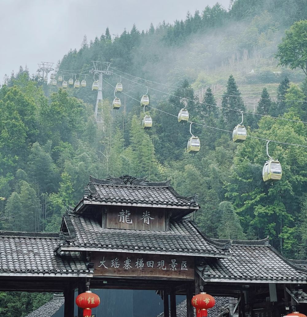 ▲ 金坑红瑶梯田有“大界千层天梯”、“西山韶乐”和“金佛顶”三大著名景观,气势磅礴,直上云端;(金佛顶)可乘坐缆车俯瞰梯田,居高临下。(大界千层天梯),视野开阔,梯田层次分明,可走进田里与大自然共处。