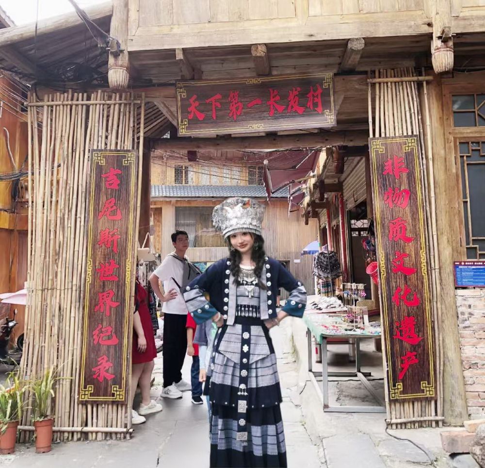 ▲ 黄洛瑶寨是龙脊十三寨中的瑶族村寨,居住着清一色的红瑶族。自古红瑶妇女有储长发的传统习惯,全村68户人家中,头发长达一米以上的有60名,最长的达2米以上同时申请了上海大世界吉尼斯纪录,号称(天下第一长发村)可自愿观看由当地村民编排的民俗展示和参观非遗文化的长发博物馆。