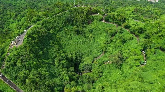 ▲ 世界上保存完整的死火山口之一,中间凹陷,南北两峰分别叫风炉岭和包子岭,形似马鞍。