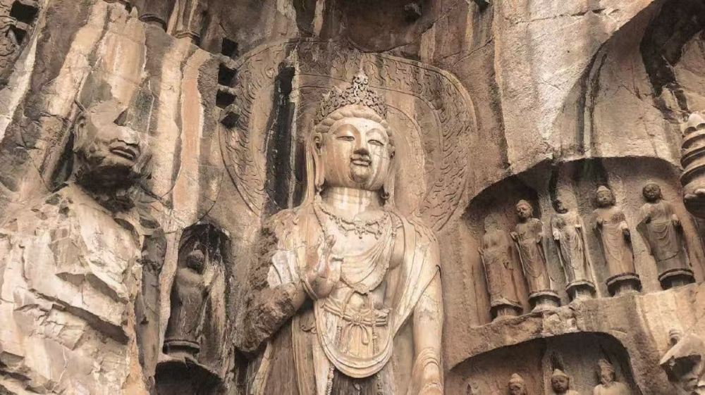 ▲ 属于龙门石窟众多造像中的精品,雕刻于唐代。造像头戴华丽宝冠,面容饱满慈祥,衣饰纹理细腻流畅,姿态端庄优雅。其雕刻技艺精湛,将菩萨的神圣感与人性的温婉巧妙融合,体现了唐代佛教造像“以形写神”的艺术追求,是研究唐代雕塑、宗教文化的重要实物,每一处细节都彰显着古代工匠的高超技艺与对佛教美学的深刻理解。