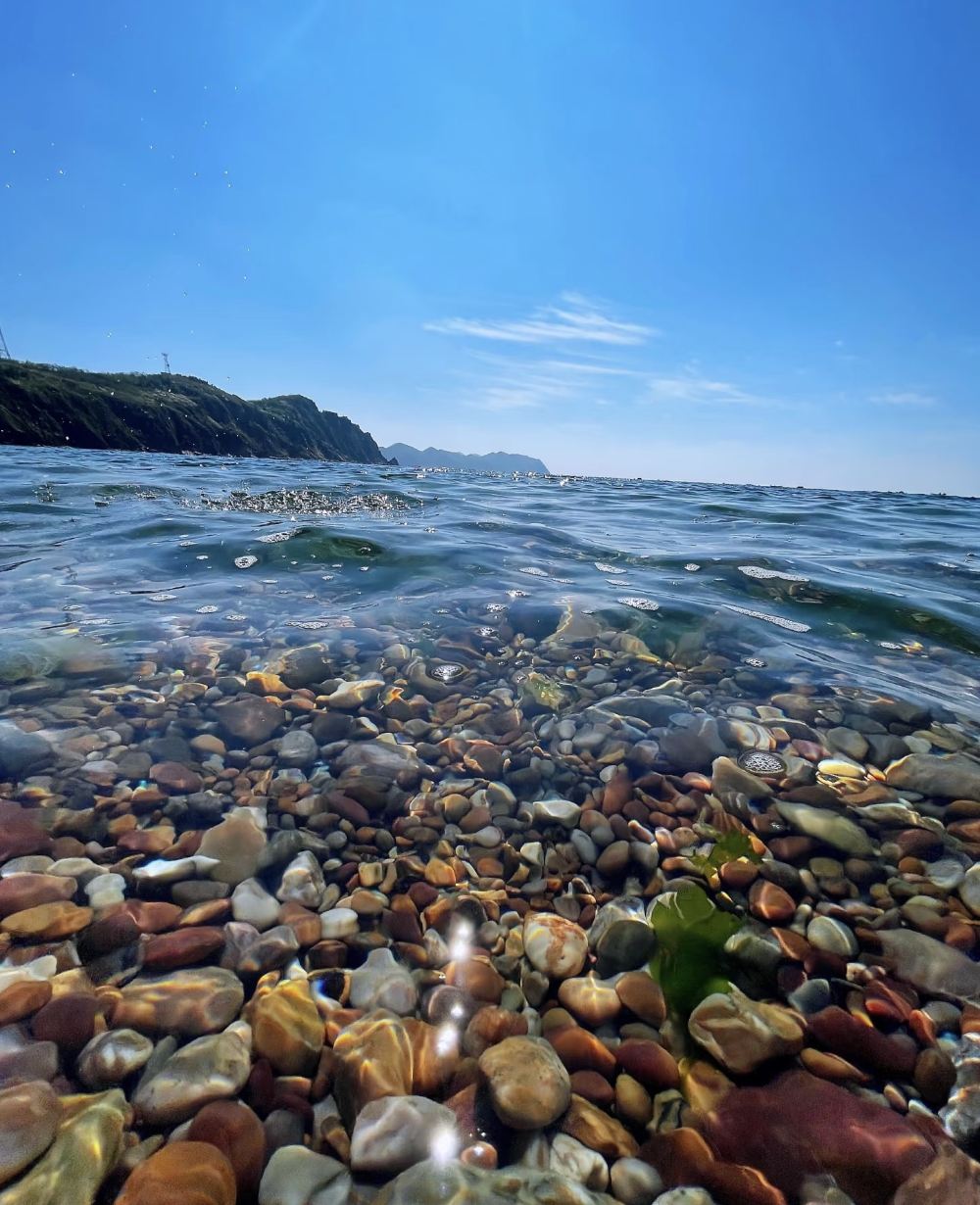 ▲ 月牙湾:天然海水浴场,沙滩布满五彩斑斓的球石,可观赏海豹表演或体验海上娱乐项目,还可以捡一颗同心石,据说能带来好运。