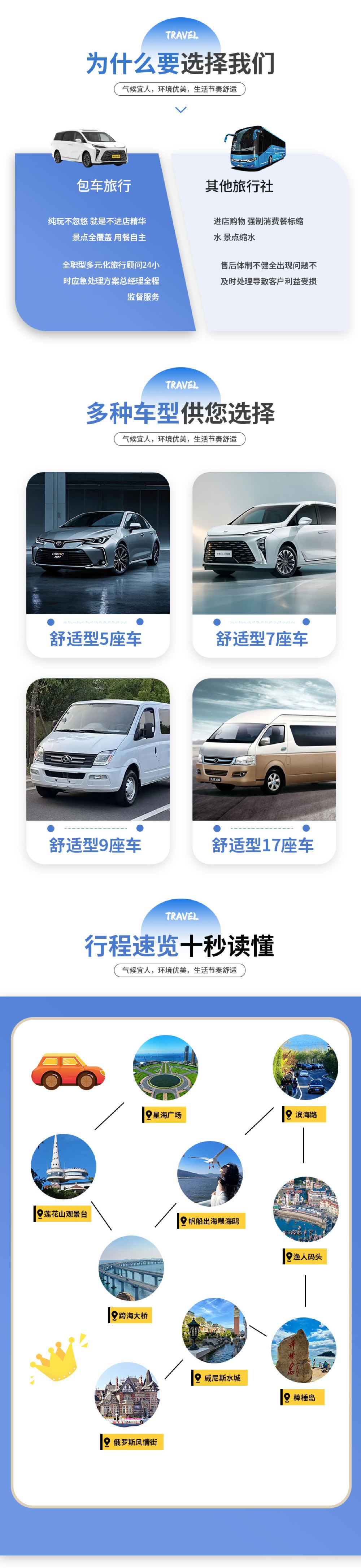 大连市区包车一天【大连包车游·大连家庭游包车·包车旅行】【包车旅行:按照自己的行程游,时间自由,去哪里您说的算】
