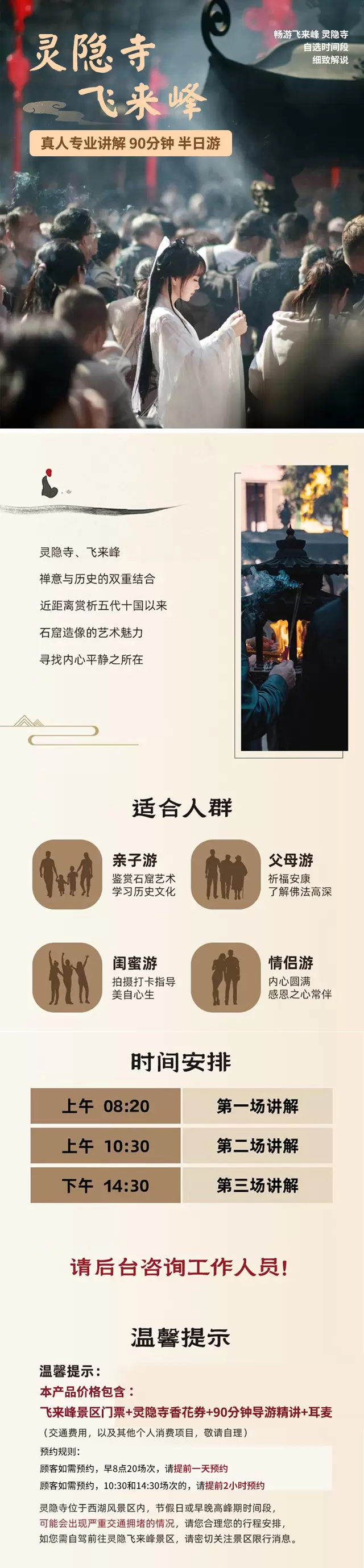 飞来峰+灵隐寺【含门票+真人讲解+香花券】1.5H人工讲解