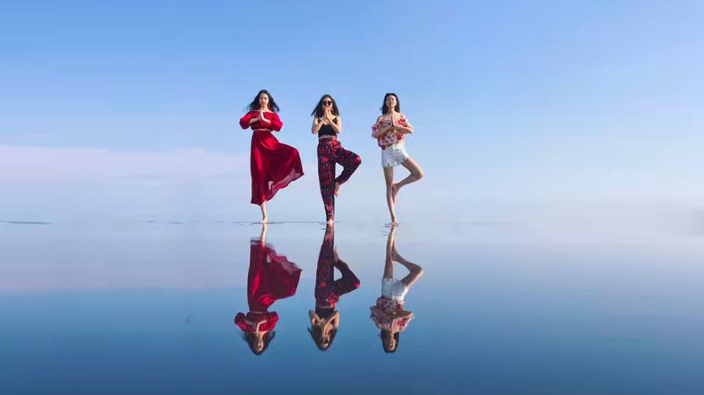 ▲ ▲ 游客站在这片沙洲上,就如同站在一面巨大的镜子上,因此得名“天空之-镜”。能让你轻松拍出海天一色的创意大片,感受大自然的魔幻魅力,是独一无二的非凡体验。