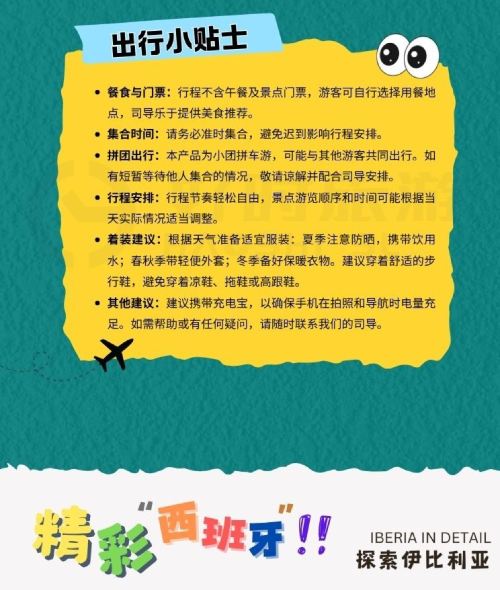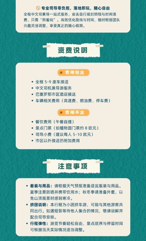 【其他说明】1、行程中的用车时间为当地时间,冬令时出发时间提前1小时(参考出发时间:冬令9:00出发,夏令10:30出发。具体以商家出行前群内通知为准)。2、周末、节假日出行,因部分城市或景点涉及堵车、人流量、交通管制等因素,司机会停靠在距离景区最近的上下客点,如导致无法游览等情况,我司不承担任何责任,给您带来的不便,望谅解。3、行程中的景点游玩顺序会根据实际情况和天气状况进行调整。
