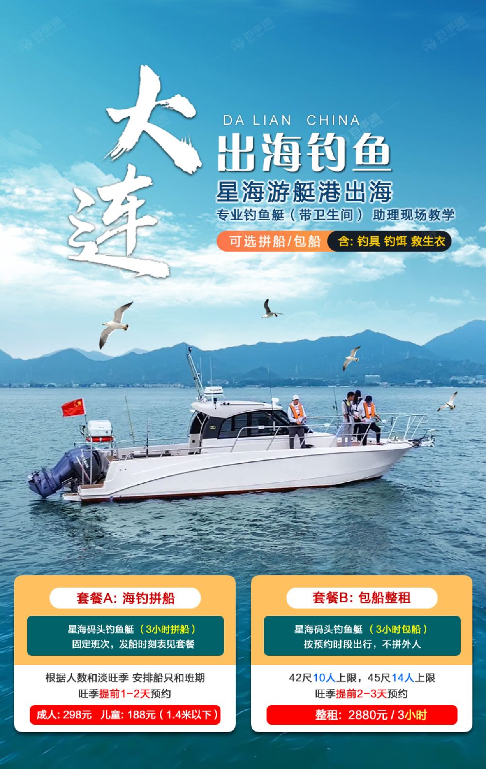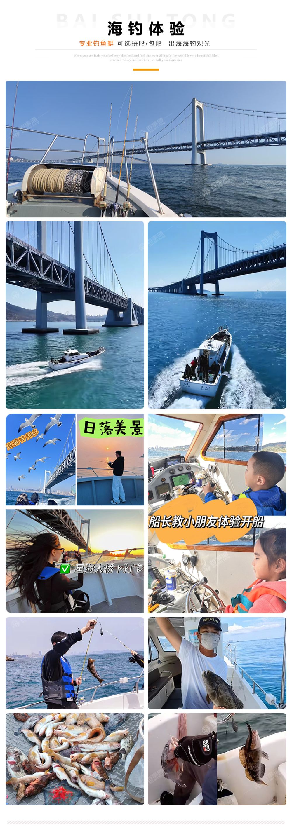 大连星海游艇码头3小时海钓拼船 /包船+喂海鸥 新手可选 【鱼获可带走】