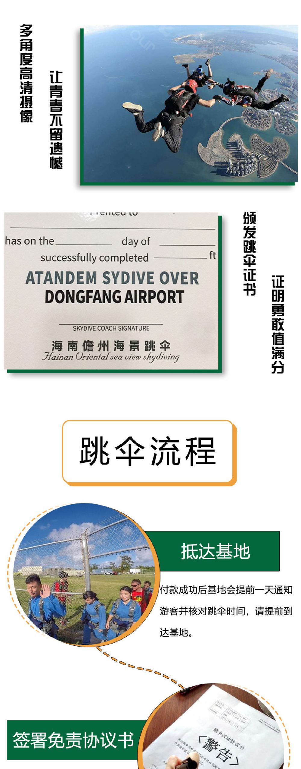 海花岛跳伞基地一日游【海花岛跳伞【4000米跳伞+高清摄像】【4000米直升机观光+跳伞摄像跟拍】