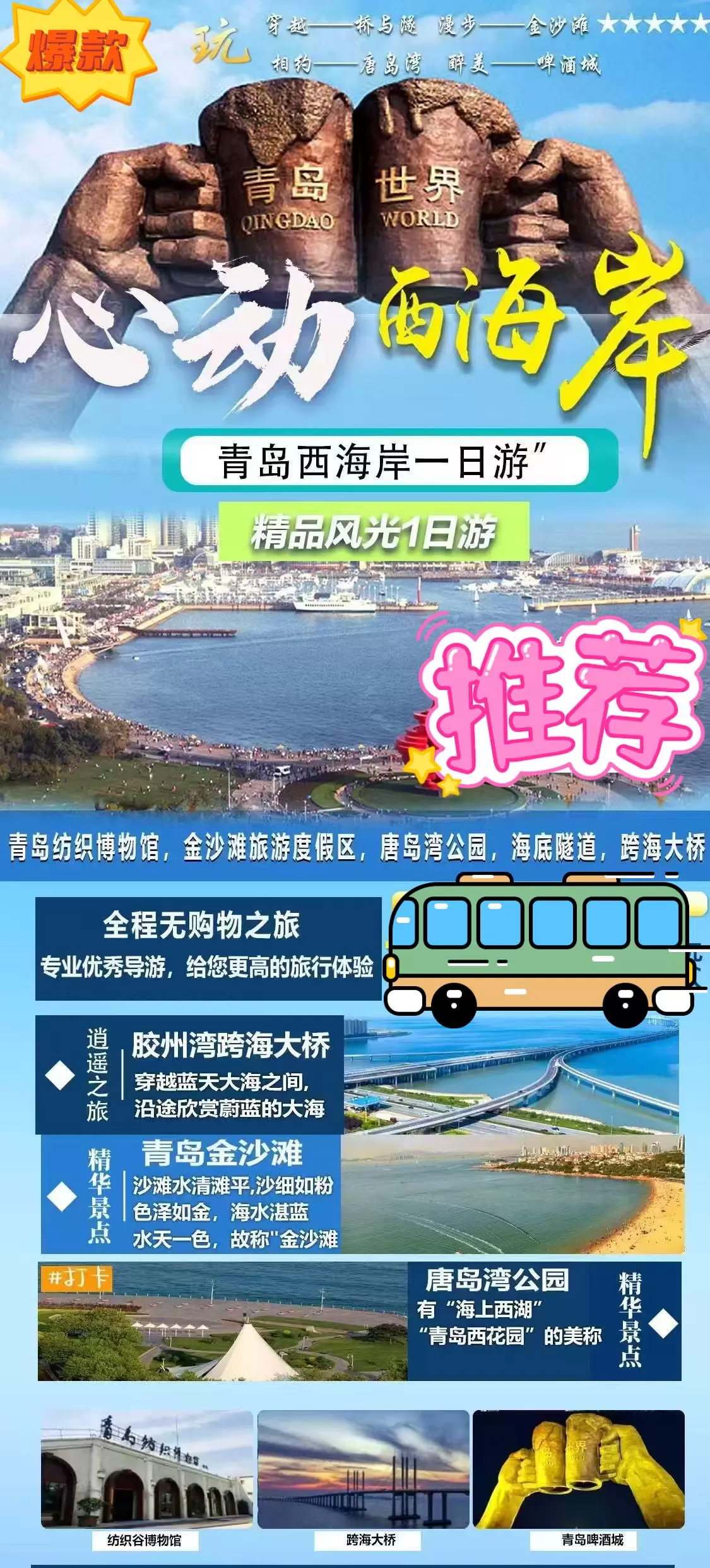 【拼小团】心动西海岸,青岛桥隧山水一日游9人小团【全程0购物+市内三区免费接送】