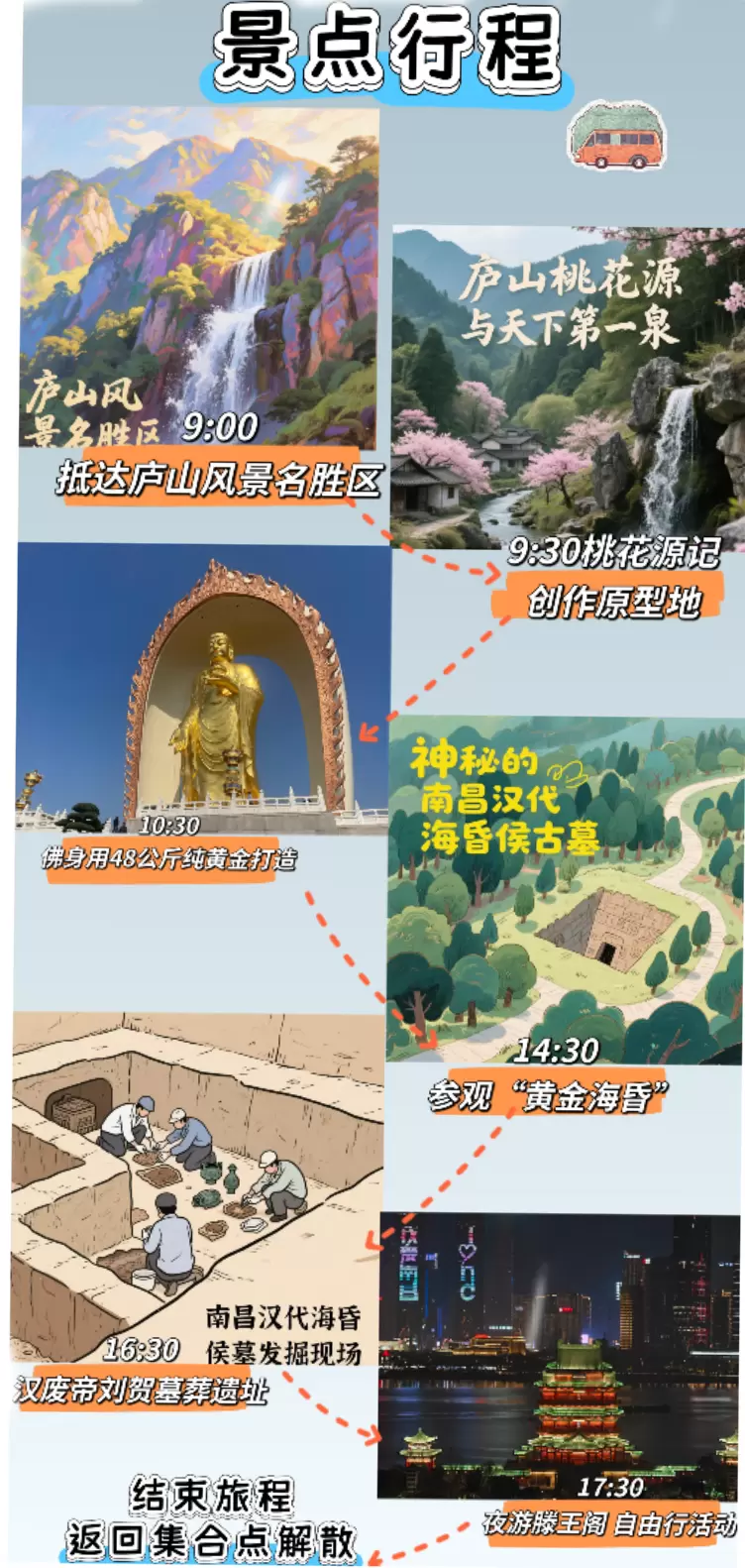 庐山风景名胜区+南昌汉代海昏侯国遗址博物馆二日游【九江卖378元含160门票海昏侯门票索道1晚住宿】