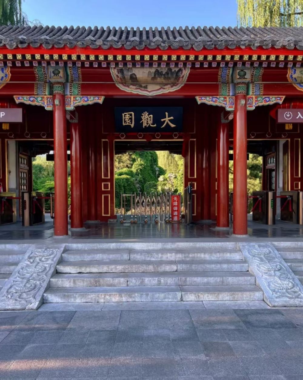 ▲ 北京大观园(Beijing Grand View Garden ),位于北京市西城区南菜园街12号, 为一个再现中国古典文学名著《红楼梦》中“大观园”景观的仿古园林,是以影视拍摄服务为主,兼具观光旅游、文化娱乐、休闲度假等功能的综合性旅游区。 其占地面积11.06万平方米,建筑面积2.54万平方米,水域面积1.6万平方米。