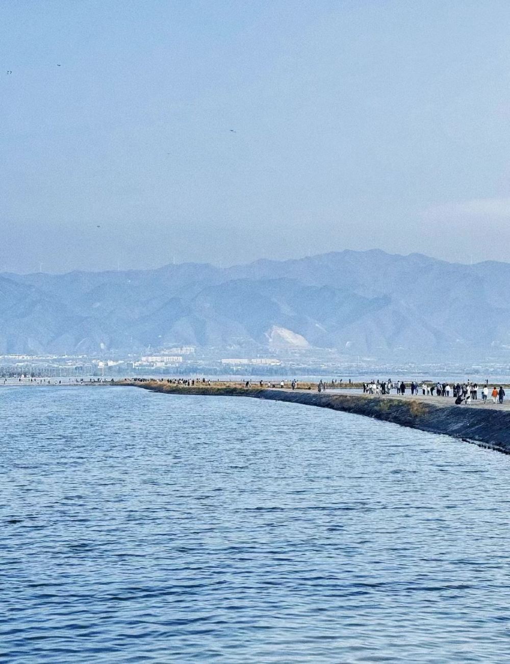 ▲ 盐池全景,别称“解池”“河东盐池”,地处山西省运城市南郊,是山西省的湖泊,世界第三大硫酸钠型内陆盐湖,面积达132平方千米。