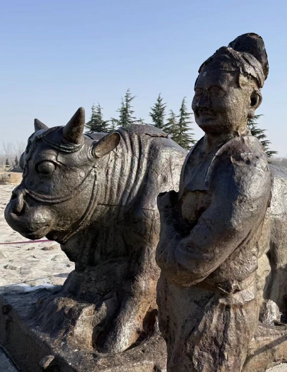 ▲ 参观唐代开元年间铸造的一【黄河大铁牛】,为稳固蒲津浮桥,维系秦晋交通而铸,又称“镇河铁牛”。