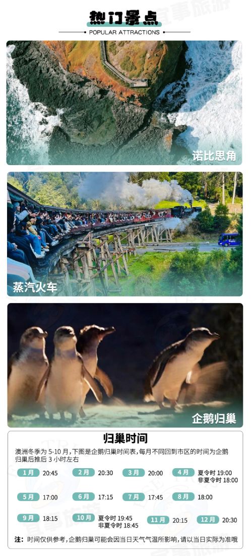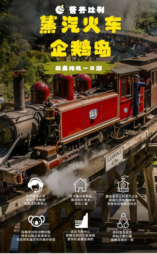 澳大利亚墨尔本普芬比利蒸汽火车+企鹅归巢一日游有位可接急【企鹅归巢/蒸汽小火车/市区接送/中文司导】
